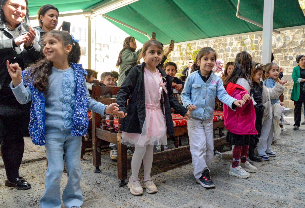 Sosyal Hizmetler Dairesi Başkanlığı tarafından organize edilen programda, Zarokistan Kreş ve Gündüz Bakımevlerinde eğitim gören öğrenciler, eğitmenleri eşliğinde Sur ilçesinin tarihi sokaklarında yürüyerek Dengbej Evi’ne götürüldü.