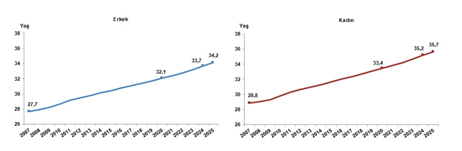 Türkiye'de 2024 yılında 34,4 olan ortanca yaş, 2025 yılında 34,9'a yükseldi. Cinsiyete göre ortanca yaş erkeklerde 33,7'den 34,2'ye, kadınlarda ise 35,2'den 35,7'ye yükseldi. Sinop 44 ile en yüksek ortanca yaş değerine sahip il olurken, 21,8 ile Şanlıurfa en düşük ortanca yaşa sahip il oldu.